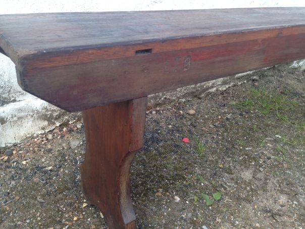 A really lovely 1940's pitch pine bench from the London Underground