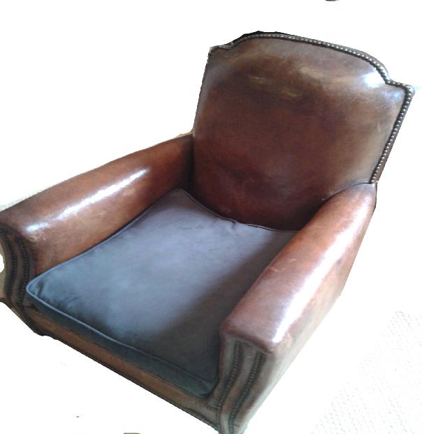 C.1920 English club chair in fantastic condition. No rips or tears and the springs are in good condition. The leather is perfectly aged and the studs have a fantastic patina. Really lovely chair and very rare