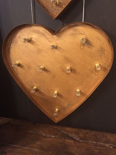 Hand made steel heart finished in gilt and rust. The heart contains 11 lights and id dimmable