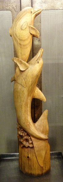 Carved wooden dolphins standing a metre tall, a lovely focal point for any room.