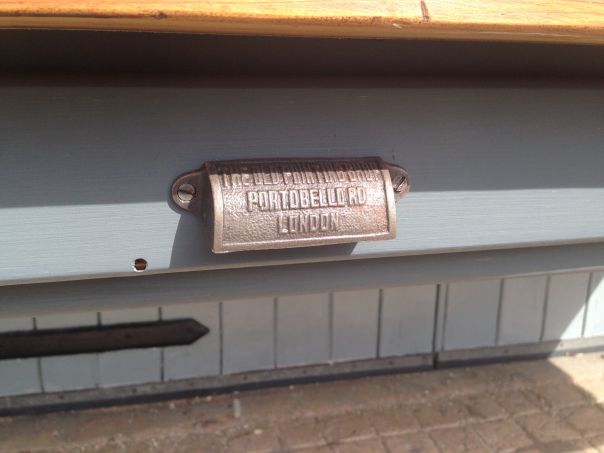 The drawer handles say The Old Printing Shop, Portobello Road, London.