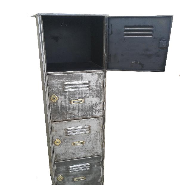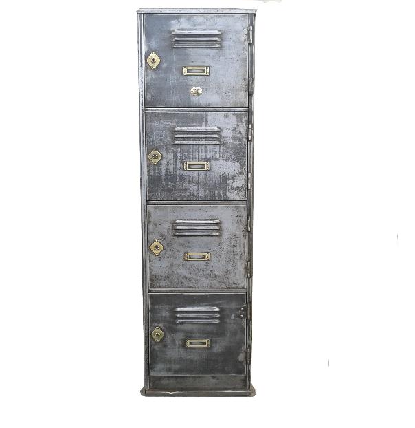 Sympathetically polished set of 4 steel lockers with brass accents.