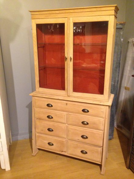 Really lovely stripped oak dresser with Moroccan Red interior to both cabinet and drawers.