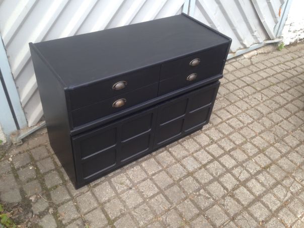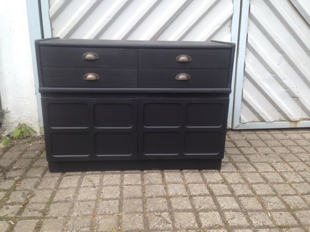 Gorgeous upcycled 70's sideboard painted in matt black, with replacement cup handles.