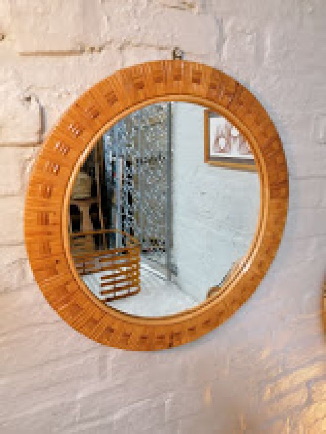 £32.00Boho hippy chic cane wall mirror in great condition, neutral colouring to suit any decor.